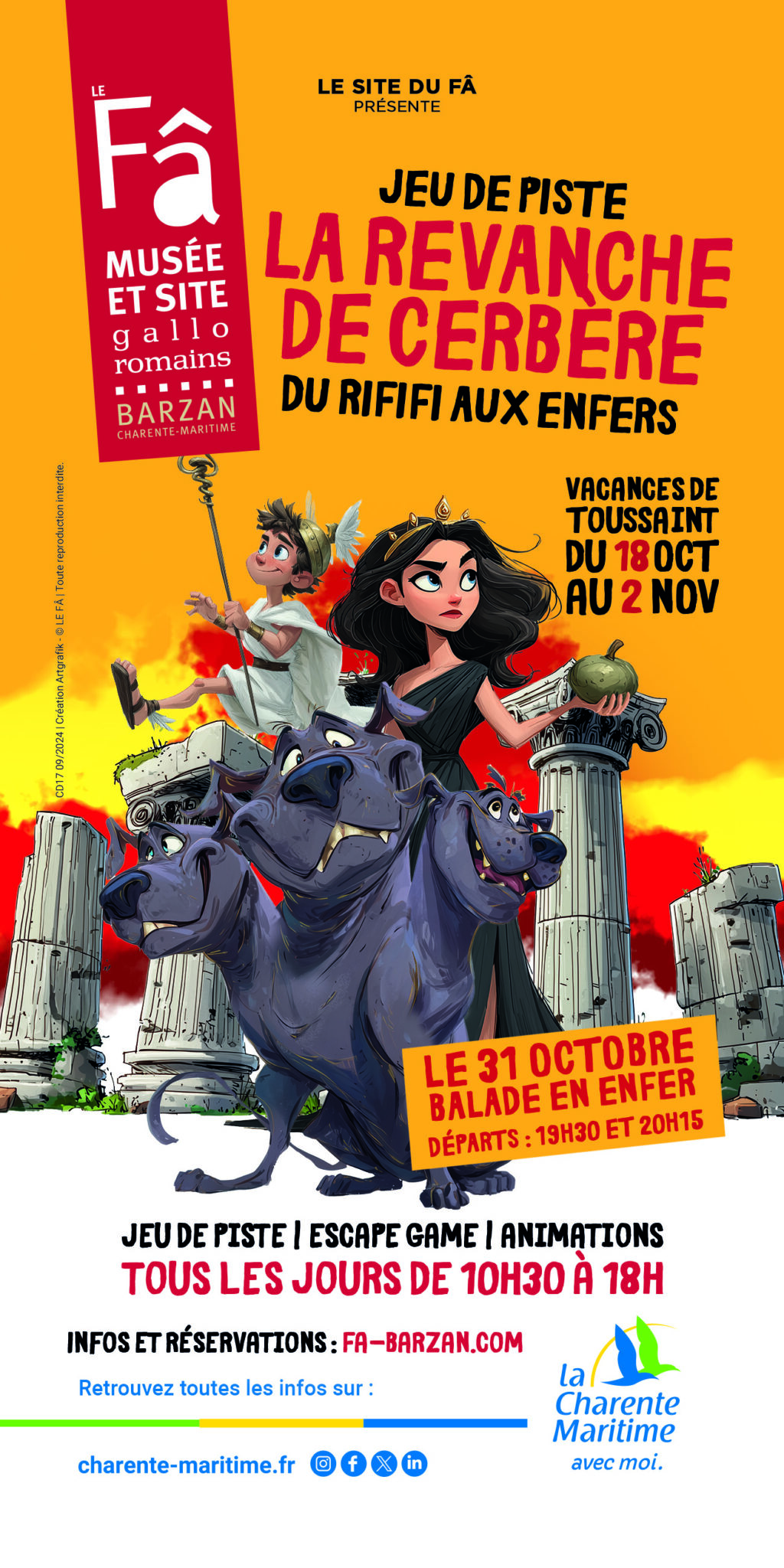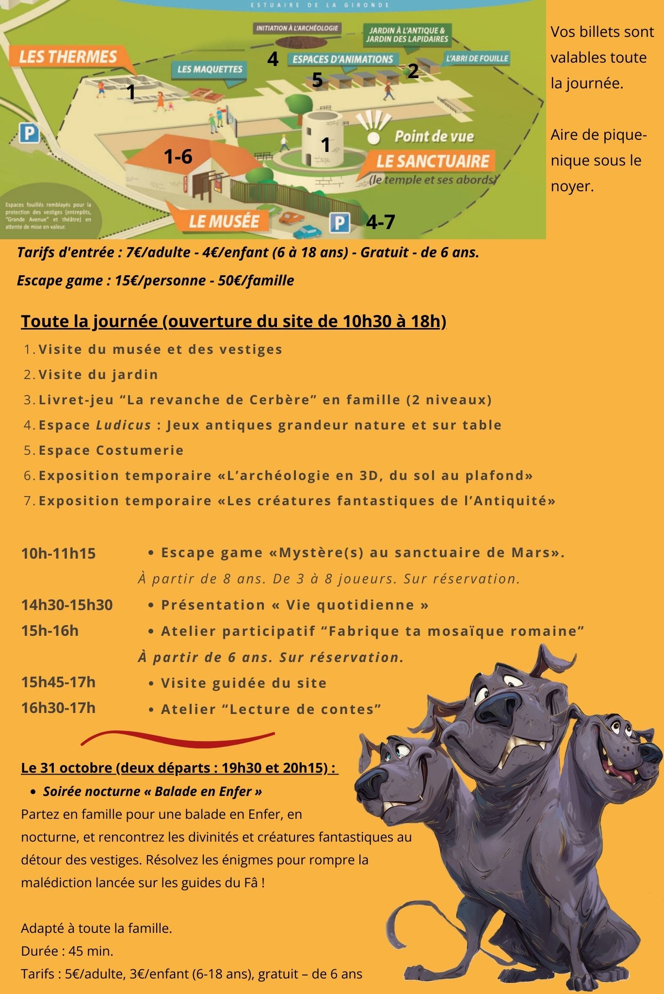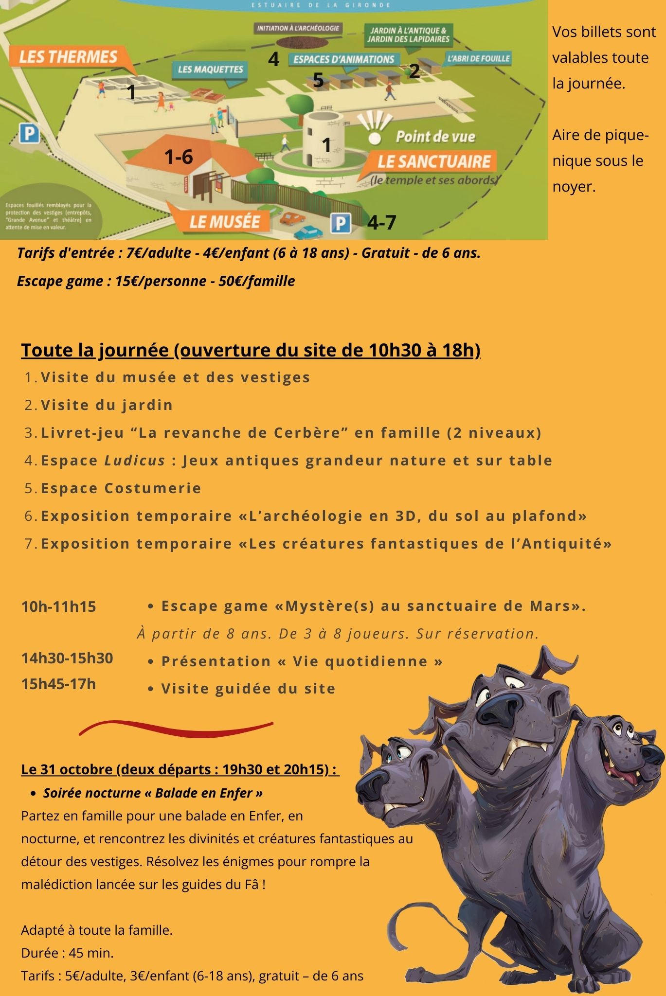 - Parcours-jeu « La revanche de Cerbère » en autonomie (2 niveaux: 6-10 ans & 10-14 ans).