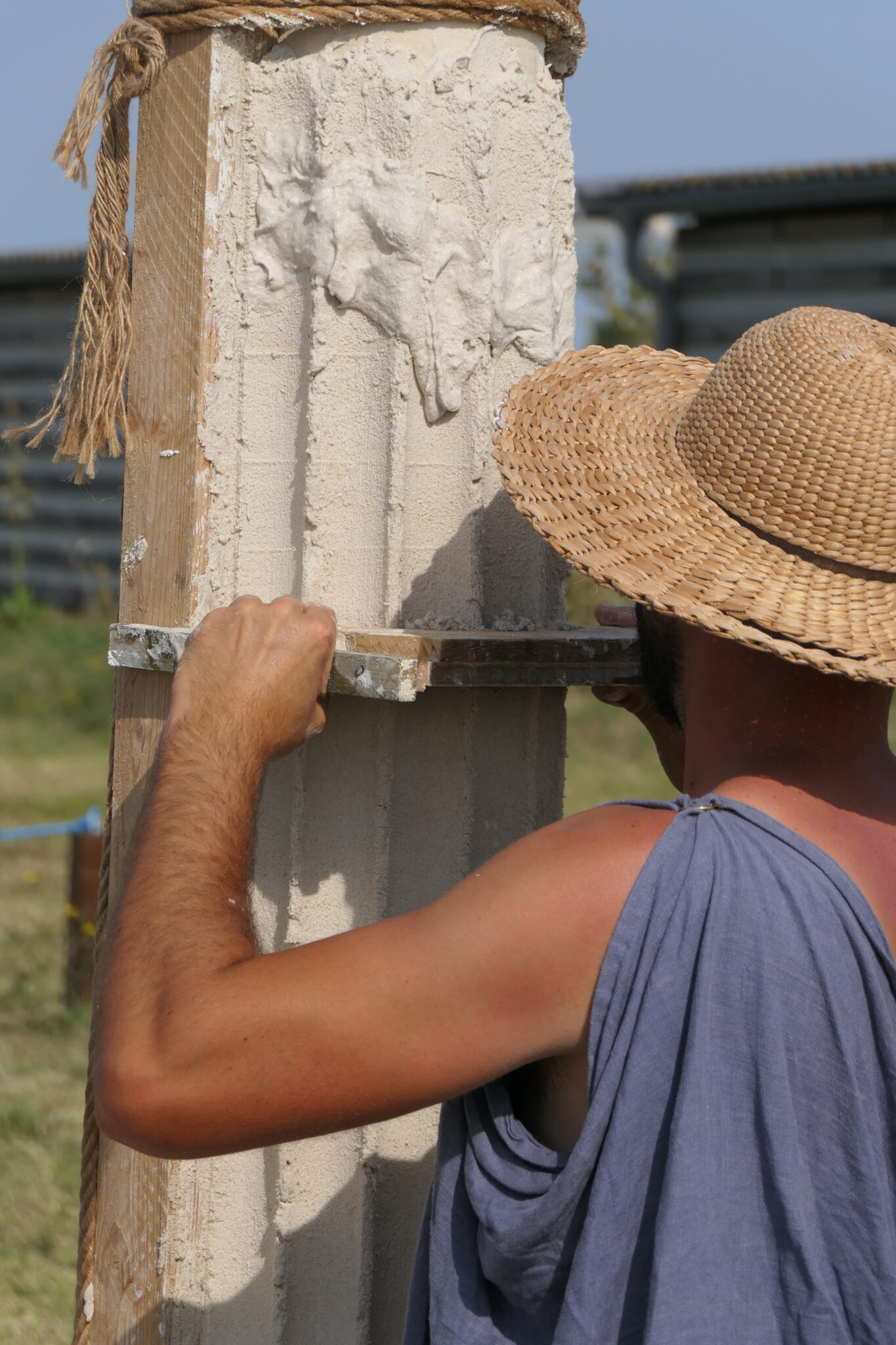 Vous pourrez notamment assister à la réalisation des badigeons de chaux et la réalisation des cannelures en enduit de chaux.